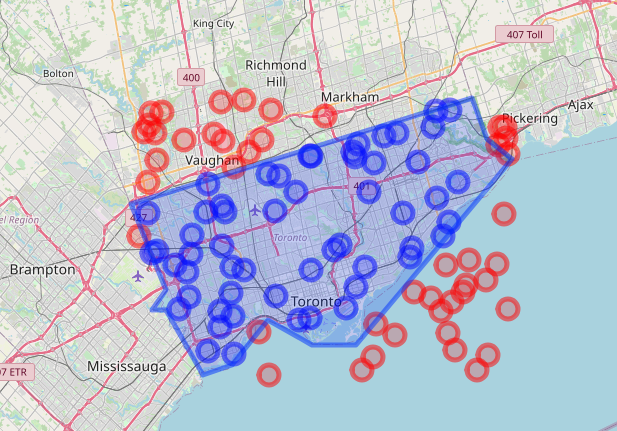 You get some points inside the city, but you will also get a number of points in Vaughan or Mississauga or Pickering or Lake Ontario! How to eliminate the ones I don’t want?